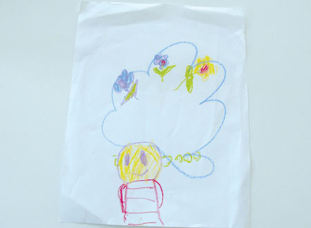 (Both drawn with Clementine Soy crayons, so smooth and nice to draw with… too bad  Ila has broken all of ours already!)