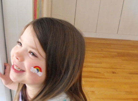 The rainbow party was a success! We had so much fun getting ready for it and the kids all seemed to have a great time. We made these super easy and cute hanging rainbows (made with paper plates!).