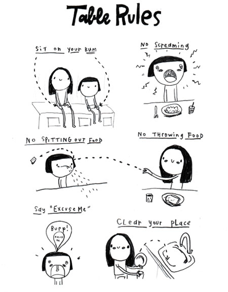 Fantastic table rules! I love sit on your bum, my Skyla dances around at the table and is never still!