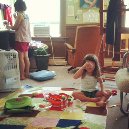 I have to admit, back in the Spring when I was moving all my kids’ craft stuff into my studio… I was a little worried. My idea was to make it a space for us to share. We were moving into a smaller home and there was no longer any room for all their painting/drawing stuff (there’s lots). I was planning to have them home with me this summer. Maybe we could share the studio?