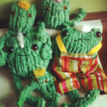 I ‘m getting work done and get to have my kids with me. Maybe it helps that I’m working on things like these frogs. The girls sit and play with them for hours. I love having them there with me.