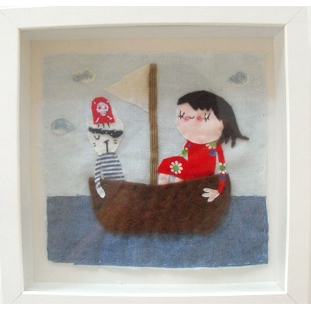 Some recent custom pieces… I feel so lucky that people ask me to do these for them. They are always so much fun! The top one is of a cute family from White Rock, B.C, the bottom one is of a girl and her pirate kitty. They travel the world together.