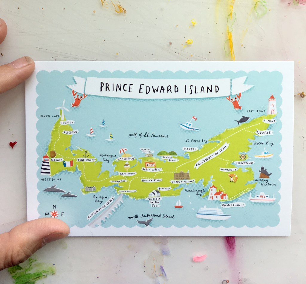 Illustrated maps of Charlottetown and Prince Edward Island (PEI). Signed prints, posters and postcards, all available for purchase at my Etsy shop.